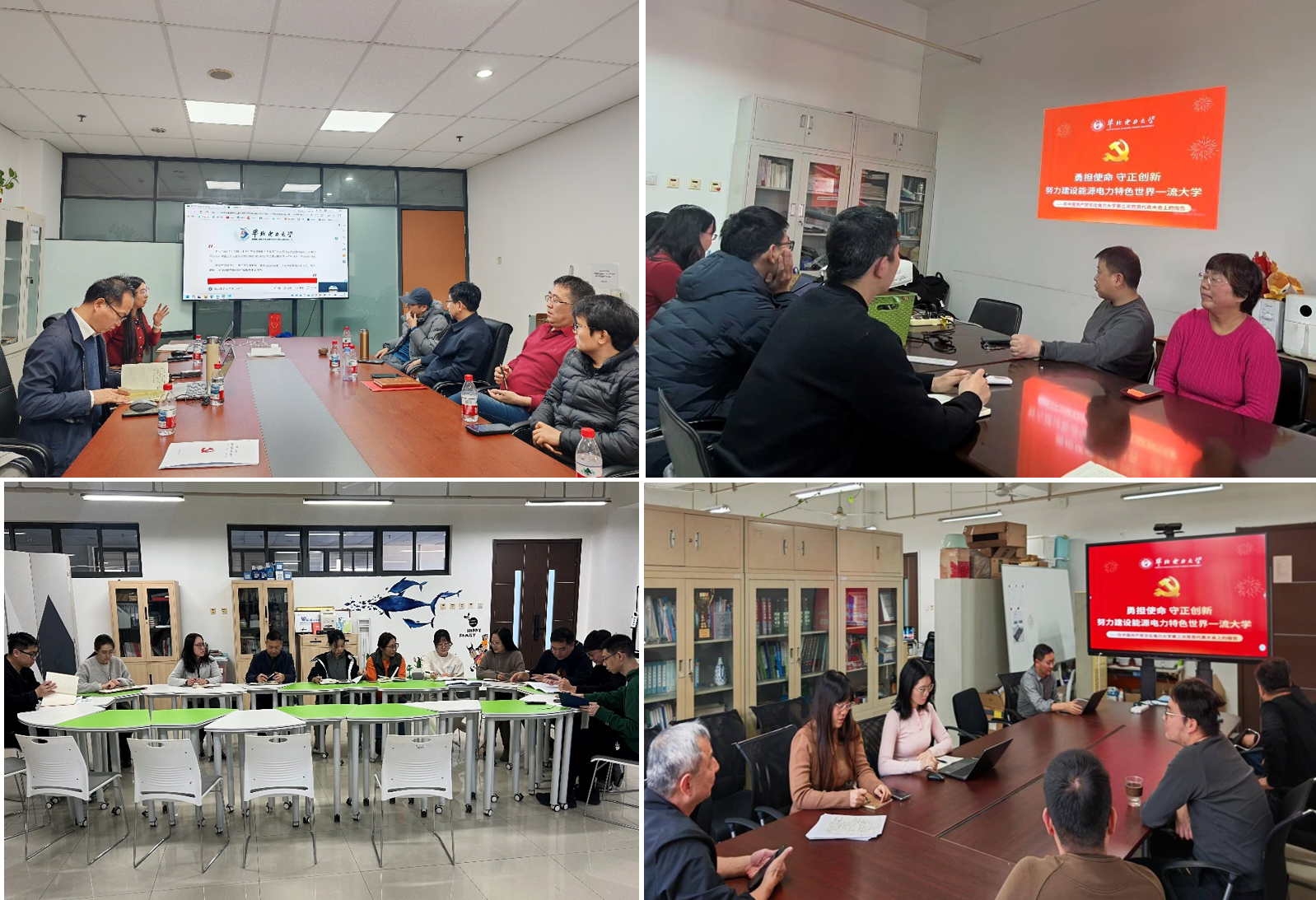建筑环境与能源应用工程党支部书记王锡老师组织党员与群众老师共同学习,深入了解学校过去五年在党建、学科建设、人才培养等领域的突破性进展,围绕服务国家“双碳”战略谈担当,提出要在课堂融入能源特色、强化数字化治理意识,推动党建与育人深度融合。