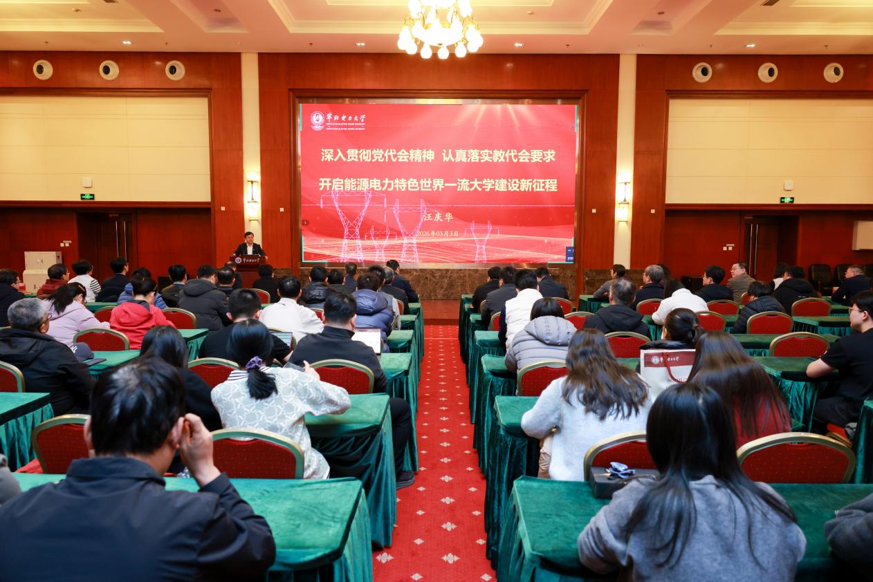 汪庆华认真传达了教育部怀进鹏部长来校调研讲话要求,重点解读了学校“能源电力特色世界一流大学”的奋斗目标,并深刻阐释了“华电梦”的丰富内涵。他强调,这一目标是基于对我国高等教育整体水平的科学判断,是学校主动服务国家战略需求、在教育强国建设中展现担当作为的必然选择。学校有争创一流的奋斗决心,更有一以贯之的价值追寻。“华电梦”承载着为党育人、为国育才的政治责任,寄托着服务国家能源安全新战略的初心使命,是 “自强不息、团结奋进、爱校敬业、追求卓越”华电精神的生动体现,更是“办一所负责任大学”理念的真实写照,坚定华电人建设能源电力特色世界一流大学的信心决心。